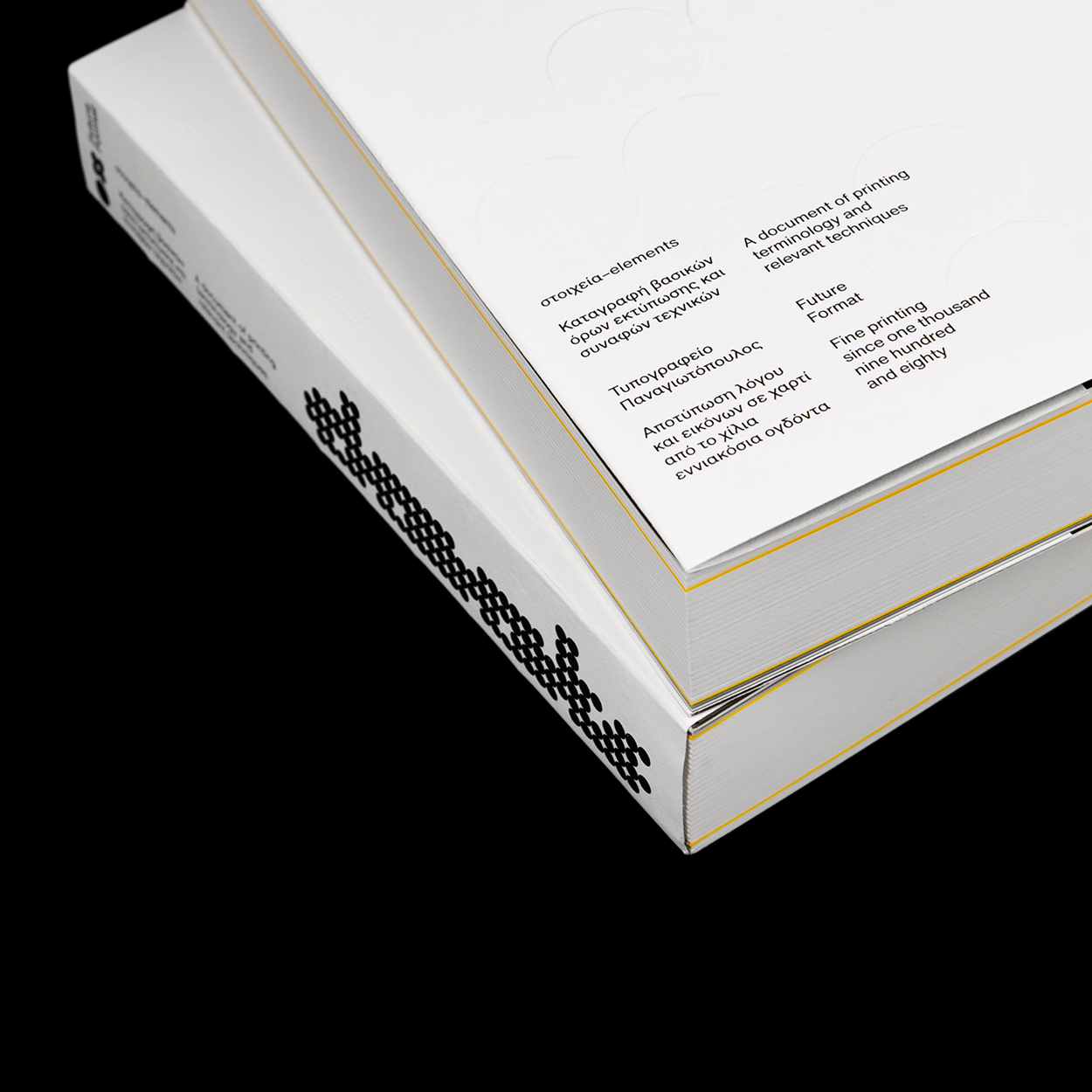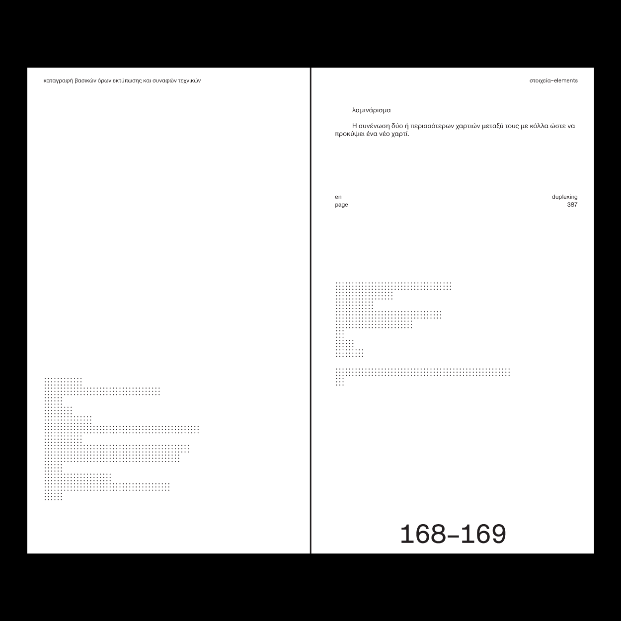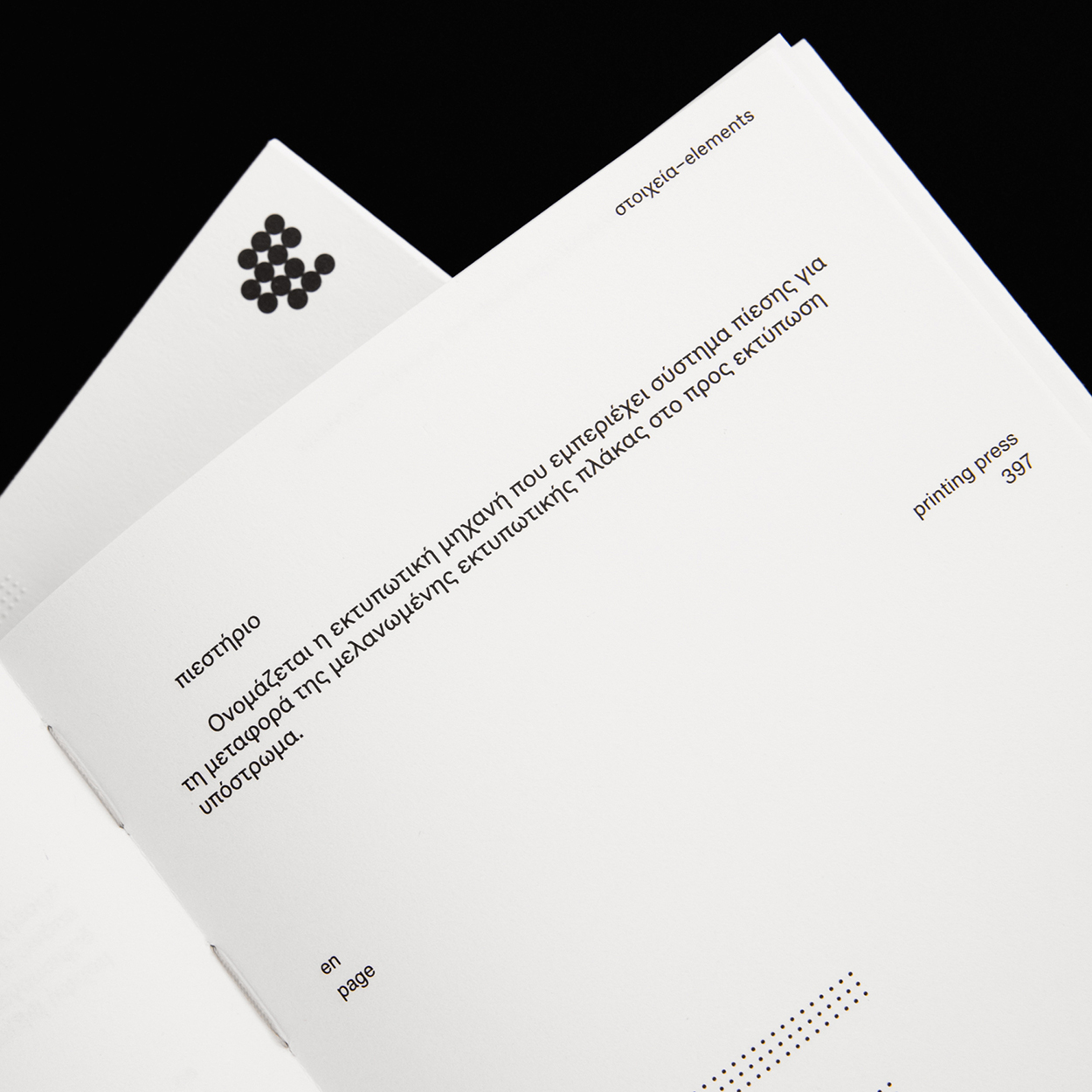 The publication Elements is a record of the knowledge brought by a system of collaboration among people, techniques, materials and modern technologies. With clarity and simplicity, this publication is a document of typographic terms while explaining typography–related techniques. It unfolds a narrative focused on functionality and presents ways in which visual systems are a part of the linearity of the publication. The production combines a variety of papers and techniques, showcasing the different levels typography is applied.