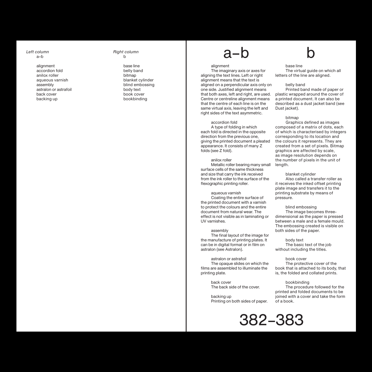 Commissioned to create a corporate brochure for a B2B distribution by Future Format, an established printing house, the challenge was to represent the volume of expertise in a manner that would best communicate the Future Format values. The client’s aim was to inform its business associates about the typographic techniques and services provided, while communicating the renewed identity. Our goal was to elevate a corporate brochure into a collaborative tool, a record of typographic terms.