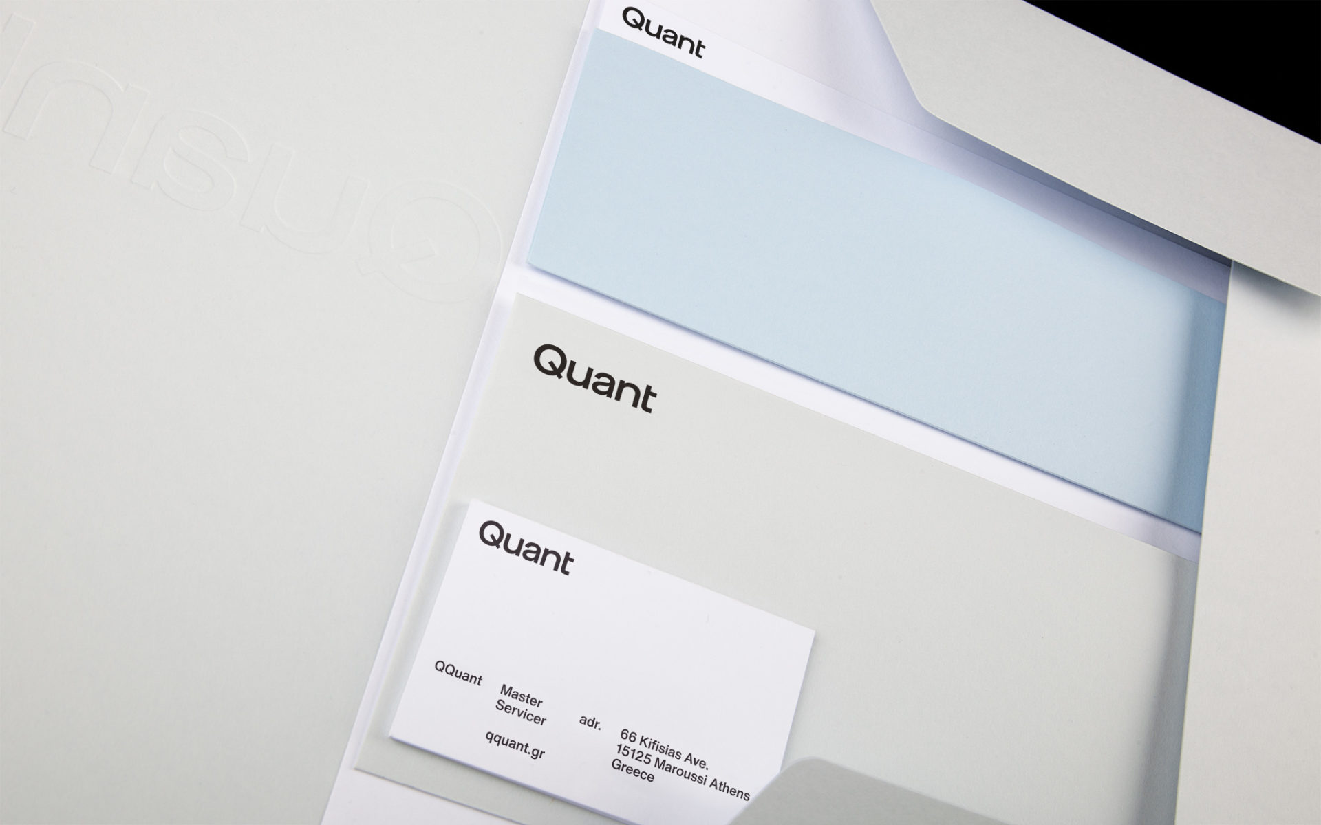 Through the design process we have created solutions that incorporate Quant’s strong legacy, while highlighting its steady path to the future. We proceeded to develop a new, unified and expandable visual identity, using the language of finance companies as a trigger for the development of a new visual language, with clarity, consistency and objectivity in mind.